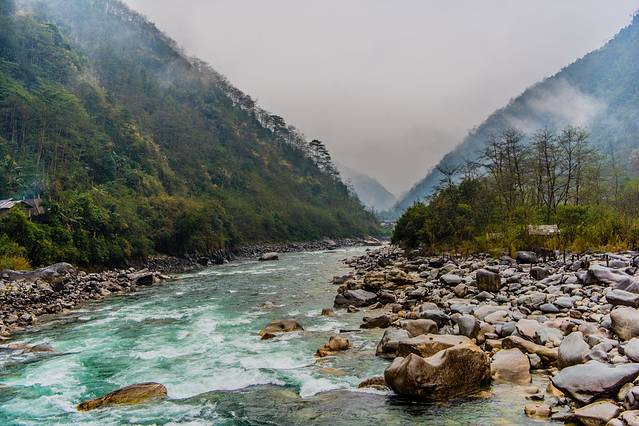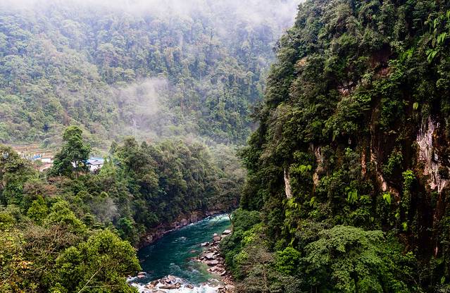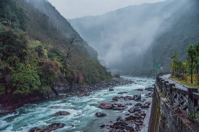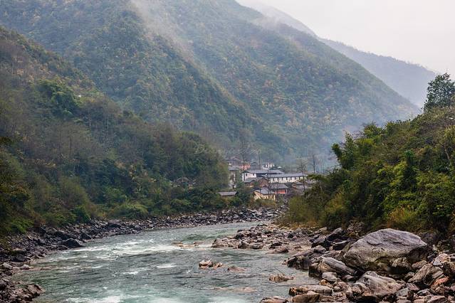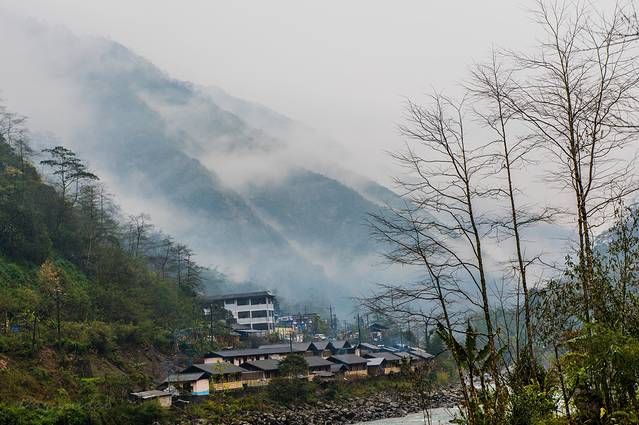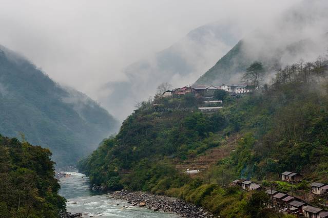 ↑ 清晨,细雨中的独龙江