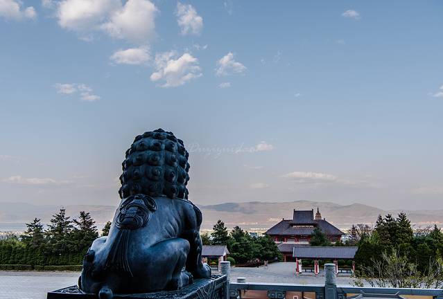 ↑ 一只石狮威严地俯视着洱海