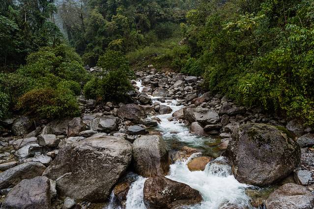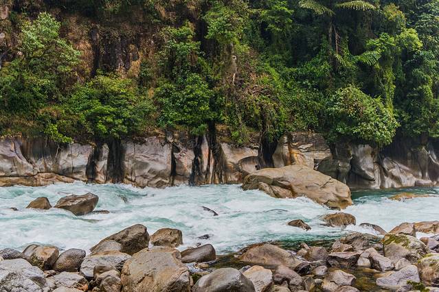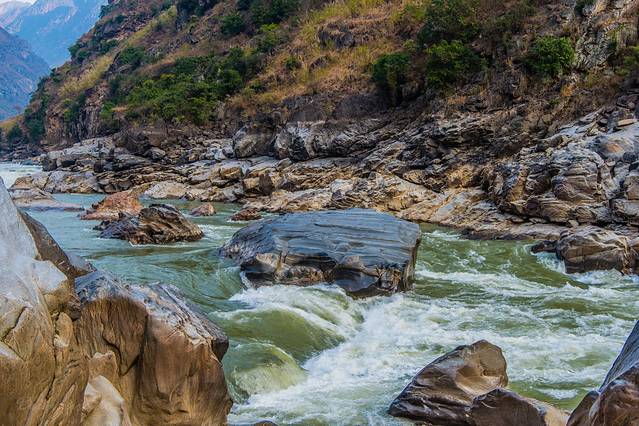 此处是怒江第一啸。专门去问了下度娘:一路咆哮的怒江到达这里江面从100余米突然收紧到50余米,平静的怒江水变得湍急万分,浪花飞溅,发出雷霆万钧,震耳欲聋的怒吼声,形成70余米的巨浪,2004年5月1日参加贡山丙中洛旅游规划研讨会的专家们提出:贡山月谷是千里怒江的缩影,最能体现怒江奔腾咆哮的本质特征,所以命名为千里怒江第一啸。