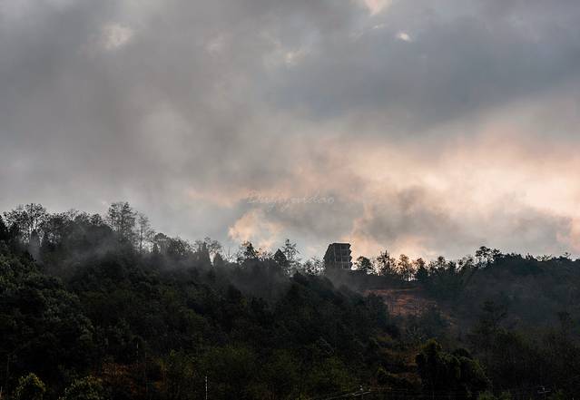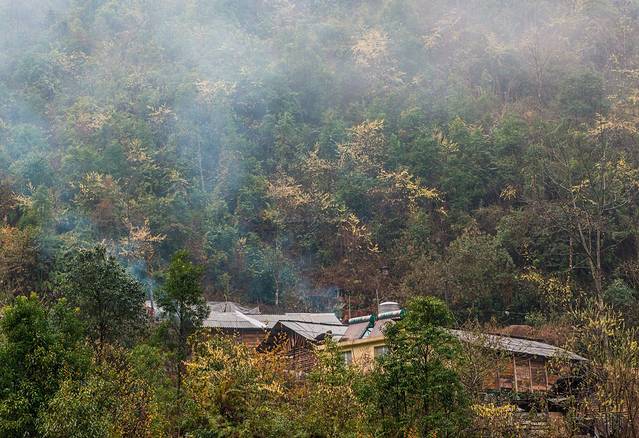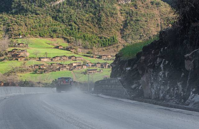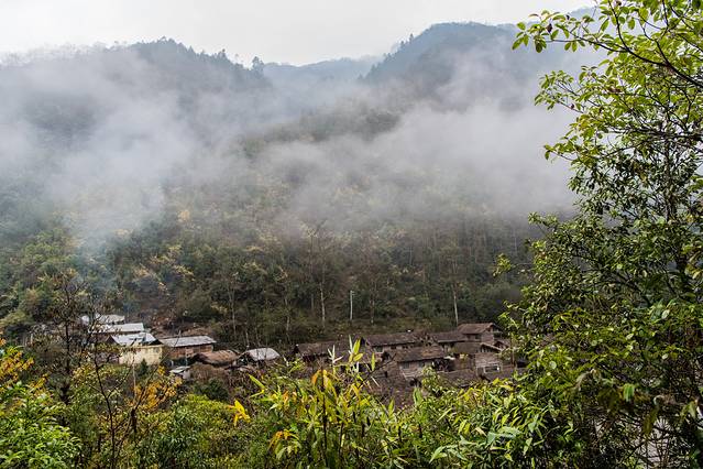 由于昨天的意外,今天的行程比较赶。天不亮就已经出发,出福贡沿怒江前行约30分钟,拐入向左的岔道,沿着蜿蜒狭窄、年久失修的盘山公路旋转而上,约16KM可到达知子罗村,途中可经过著名的老姆登教堂。