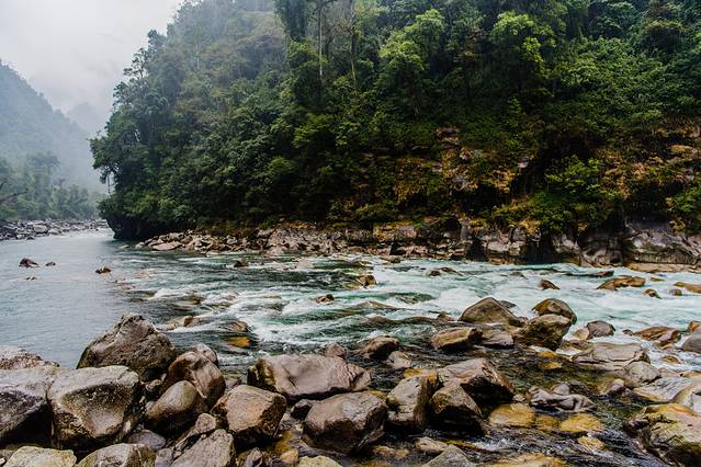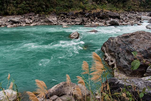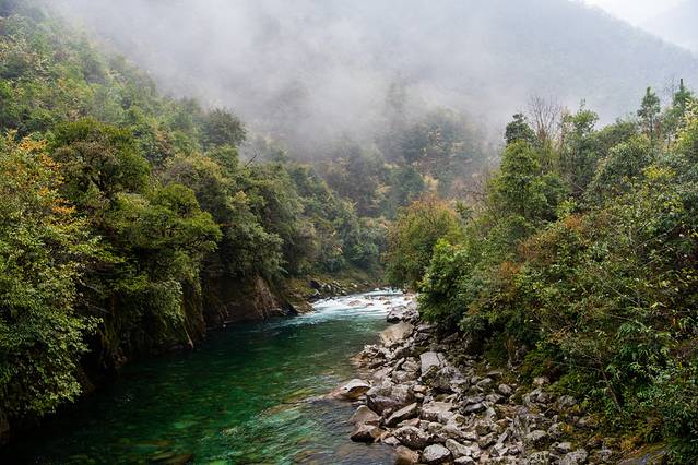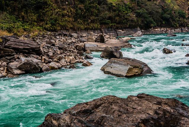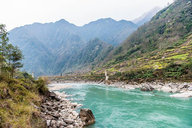 ↑ 独龙江水,碧绿清澈