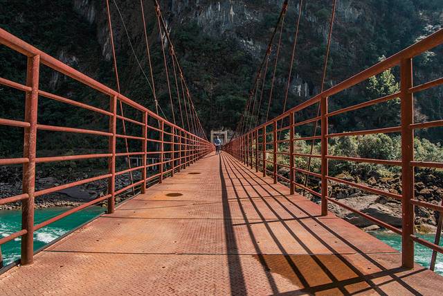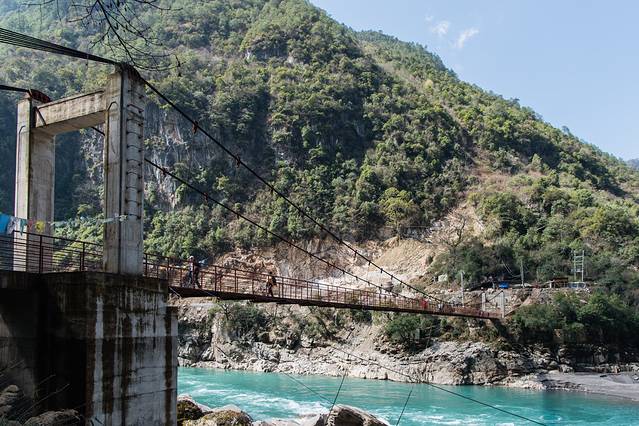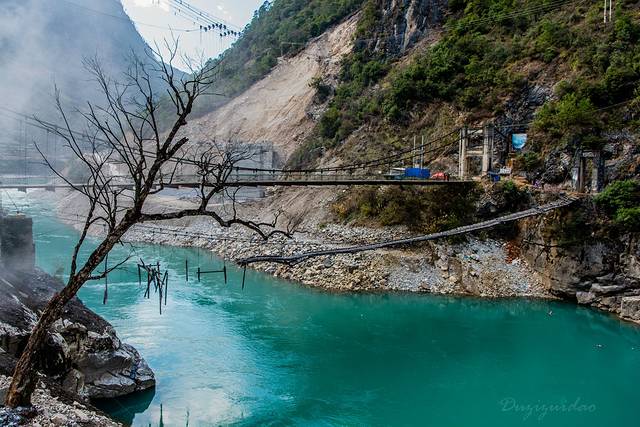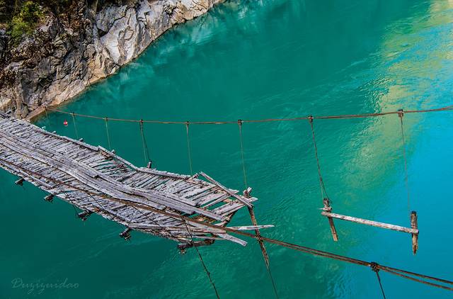↑ 怒江上最常见的人马桥,只能过人过牲畜,不能过汽车
