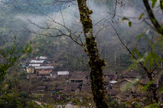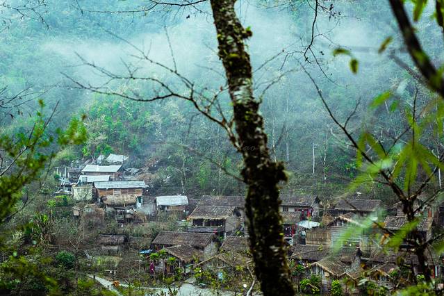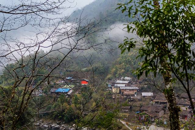 雾里村本来应该叫“翁里”,意思是“一个像鸟窝的地方”,后来有人叫“五里”。田壮壮在记录片《德拉姆》里曾拍过这里,并把从朝红桥进村的一段在山崖上凿出的道路称为古道。村庄坐落在三面是高山,一面是怒江的”与世隔绝”的云南怒江州丙中洛乡那恰洛峡谷中一个缓坡上,36户村民在一小块山地上造就一副天然图画。钟灵俊秀,画卷如诗,世人不见,只在深山。它藏在浓雾下,秀美而又神秘。四十一户农庄傍水而居,悠然自得!
