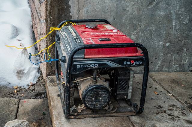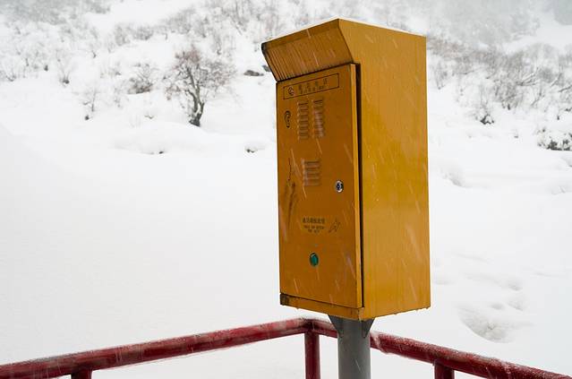 ↑ 隧道口右边有一台发电机。有人说,可能是因为没电,那通话键才没用。于是有人尝试发动发电机,多次也没有成功。难道是发电机坏了?有人说可能是没油了。朱导从汽车油箱里抽出了两矿泉水瓶汽油,总算发动了发电机。但左边那通话键还是没用。沿着发电机的线路,在隧道上方有一个移动信号基站,有人踩着厚厚的积雪,爬上去重启了基站开关,终于有了微弱的手机移动信号。大家忙不迭地发出了求救信息。此时已经是上午10点。