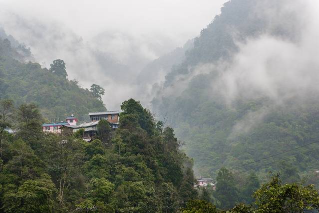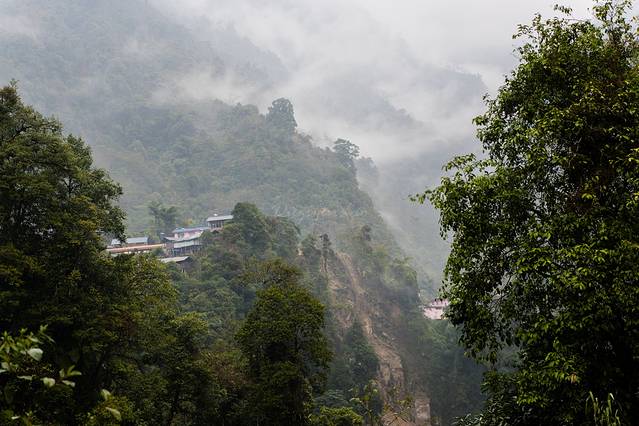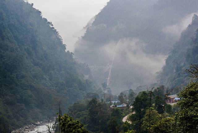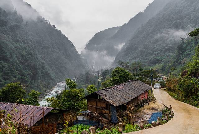天空一直下着小雨,独龙江峡谷云雾弥漫,看不真切。返程中没有停留,约两个小时后回到孔当。
