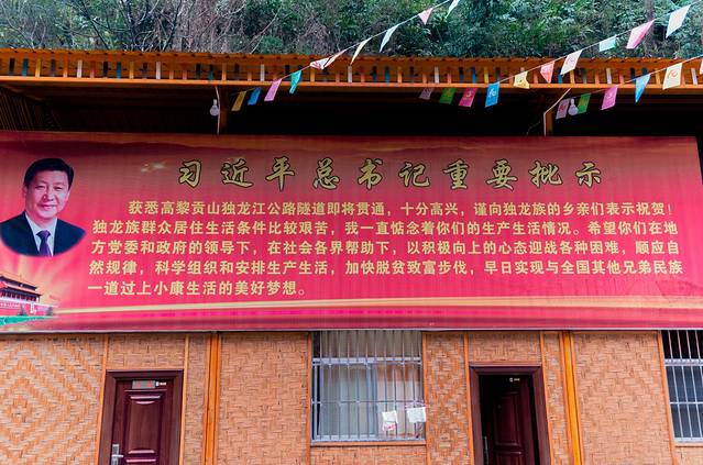 沿途都看到有独龙牛什么的标牌,俺们回到独龙江乡孔当时为时尚早,稍事休息后出去溜达,顺便瞧瞧有没有美味独龙牛肉晚餐