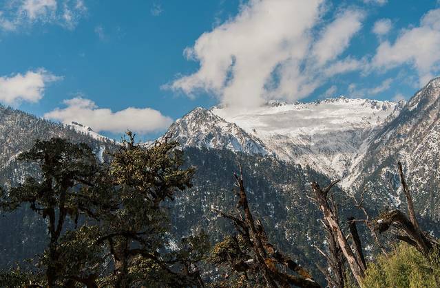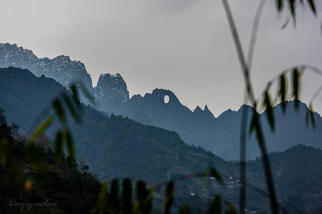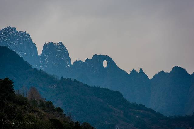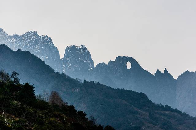 前几日刚下过一场雪,峰顶白雪皑皑