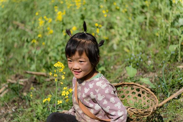 ↑ 村口的怒族小女孩,文静是一种美