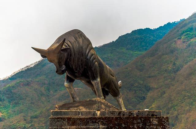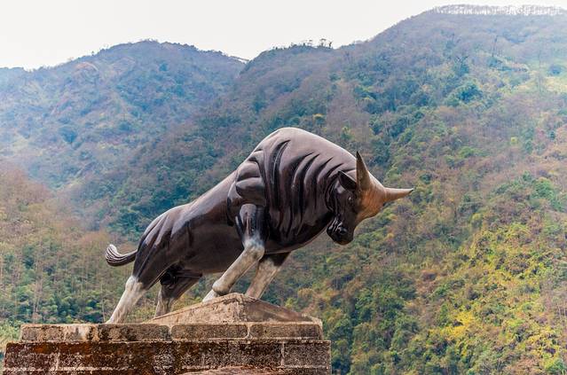 ↑ 独龙江的标志塑像---独龙牛,快到碗里来