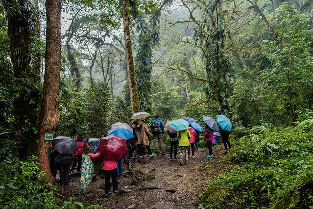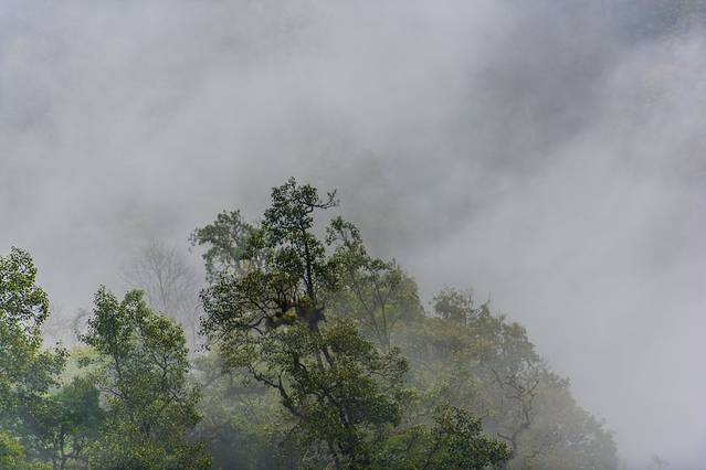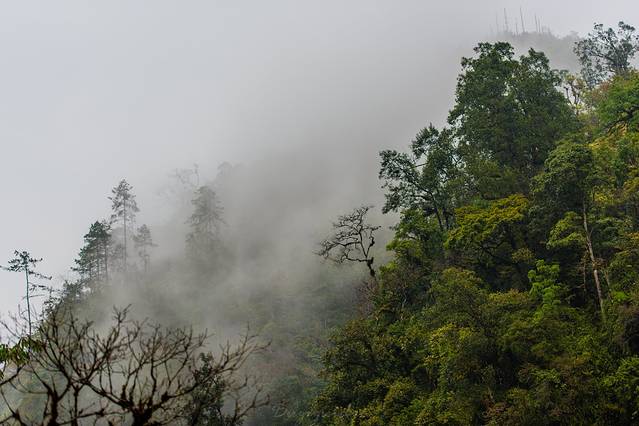 有没有仿若仙境的感觉?这里本是一个观景台,经常会有滇金丝猴出现,只是我们在雨中等了良久也没有等到