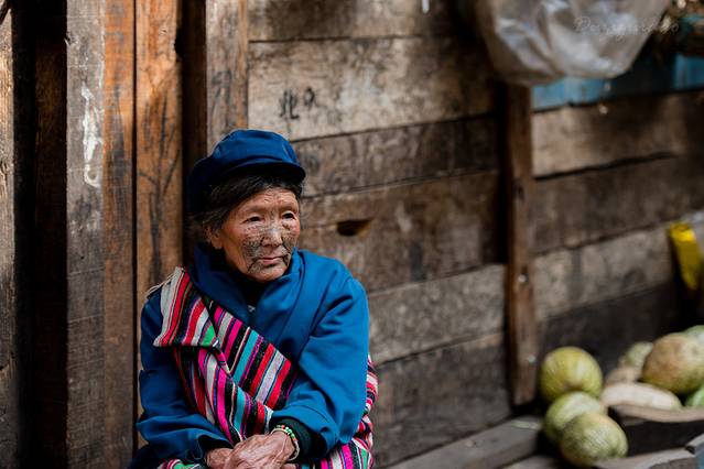 ↑ 据悉现今只剩下三十多位纹面女,我们有幸寻访到两位