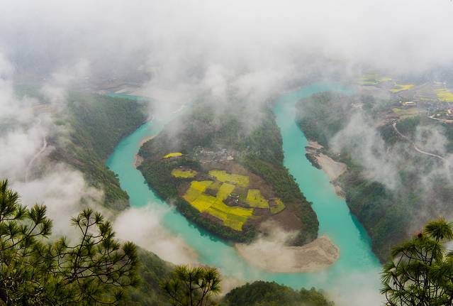 忽然一阵疾风,吹开了云雾,怒江第一湾终现真容