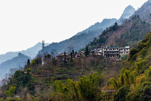 ↑ 茶马古道上的老虎嘴,远处的村落就是雾里村