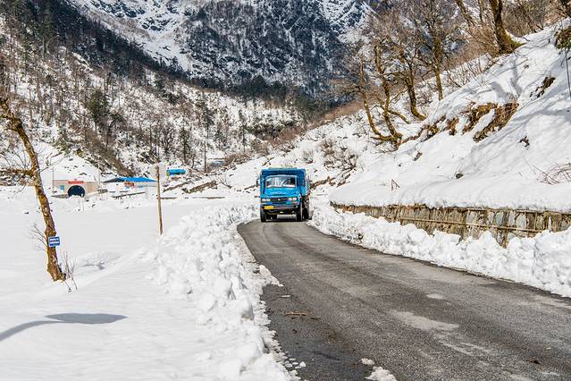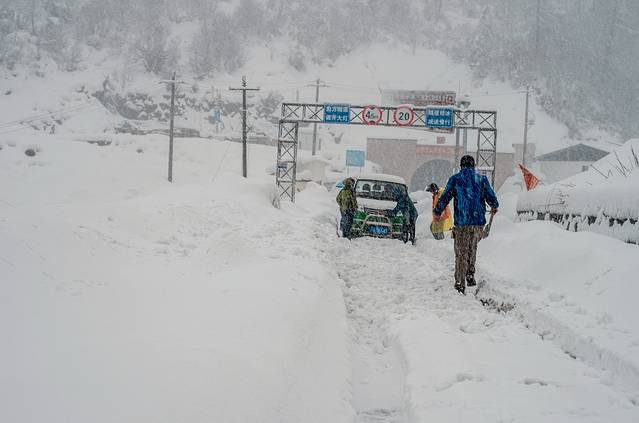 ↑ 经过独龙江隧道,遇大雪阻路,自救中.......