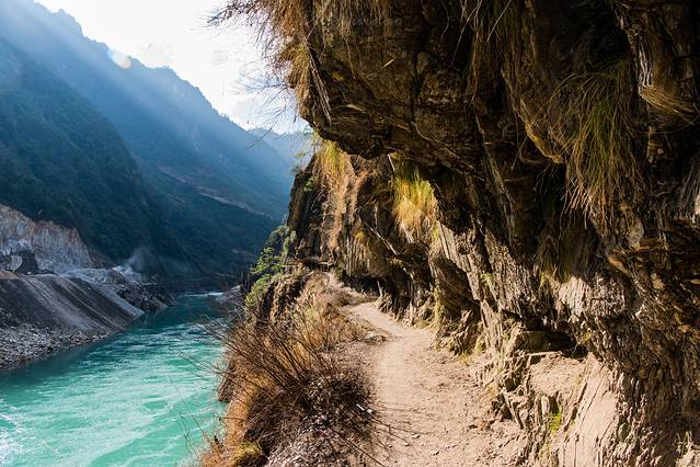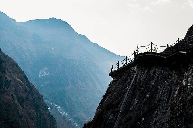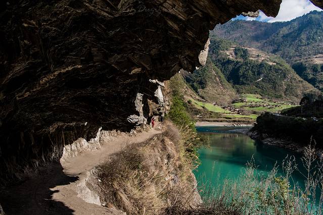 ↑ 茶马古道雾里村段,在半山岩壁中凿出来的生命通道