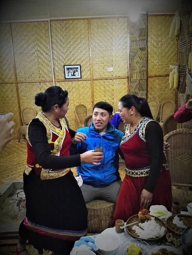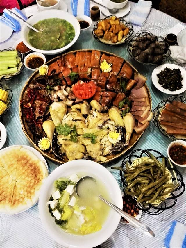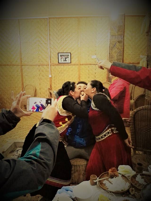 原计划今天是宿在老姆登,经过这一意外,打乱的计划。经商量并询问前面路况,我们决定连夜赶到福贡县城。到达福贡已经是晚上九点,迎接我们的是早已准备好的傈僳族大餐--手抓饭和同心酒。