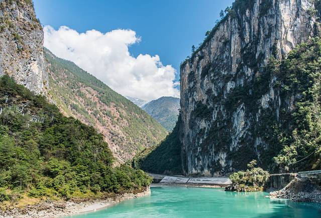 过了巴坡不久,跨过一座简易的公路桥,江对面的山路更加曲折蜿蜒,绝大多数地方只能容下一辆小车经过,自驾需特别小心。