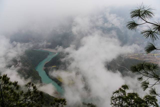 云雾缭绕,怒江第一湾看不真切