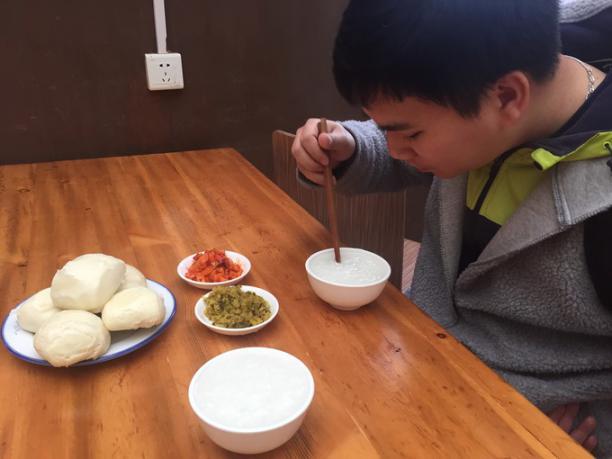 早上8点,彭导已经在客栈大厅等我们了,收拾好行李,寄存在客栈,出门吃早餐~