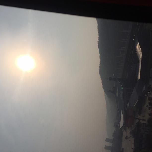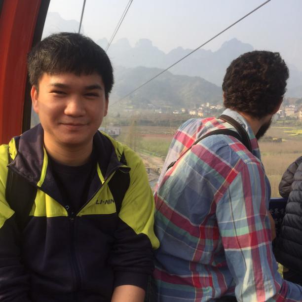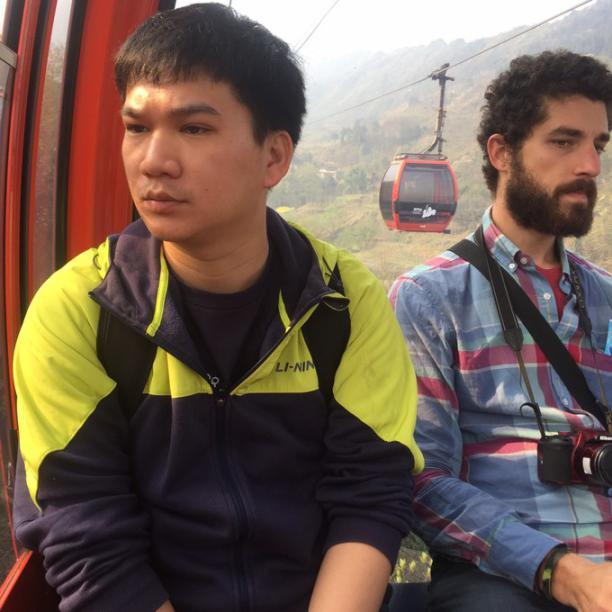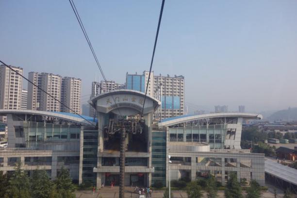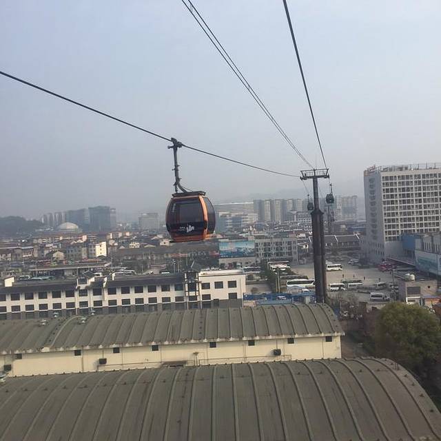 经过2层楼的排队栏,我们终于坐上了上山的的缆车,和几位“歪果仁”。