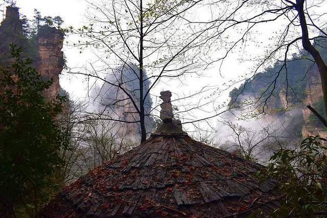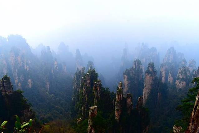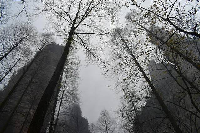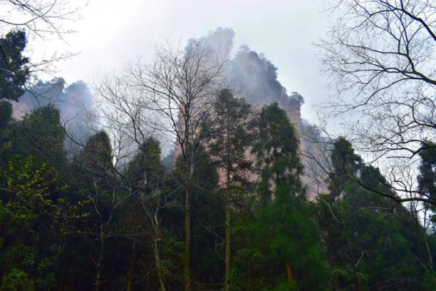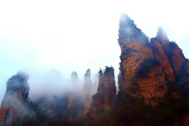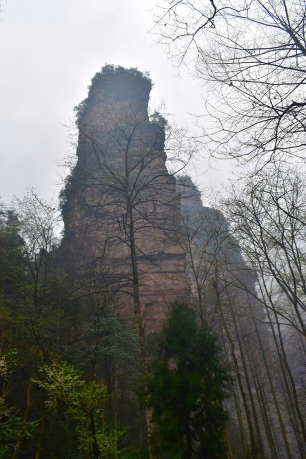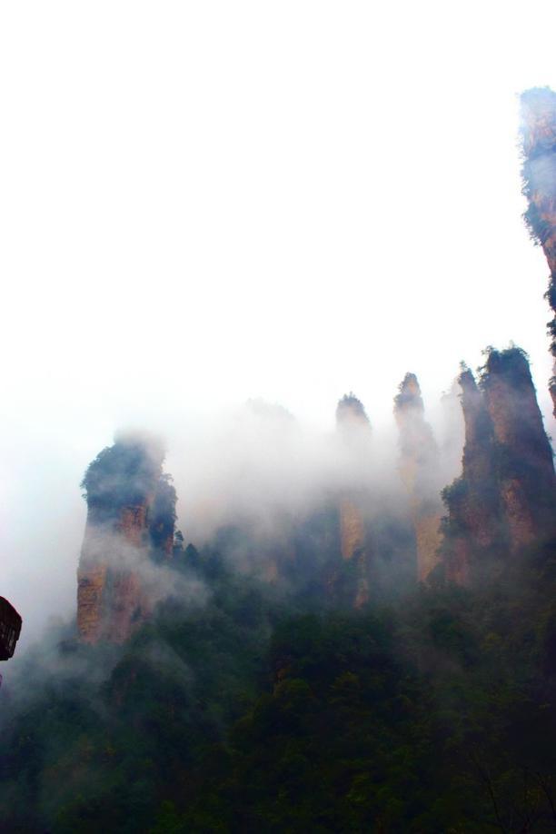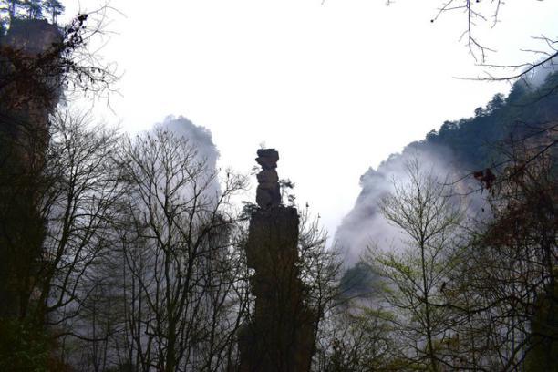 张家界的山峰,妙就妙在都是竖立的,一根根的,所以有各种形态可寻,例如这金鸡独立,全凭个人想象~