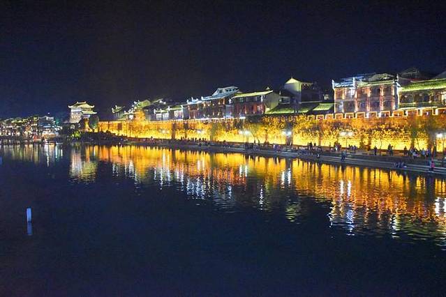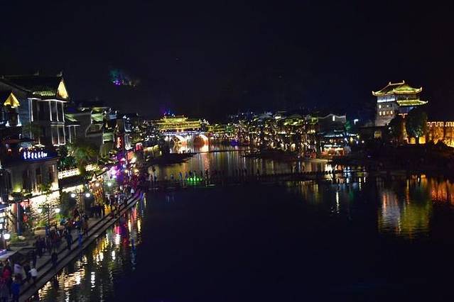 抵达凤凰古城的时候,已经是晚上7点,正是华灯初上,古城夜景模式开启的时候。