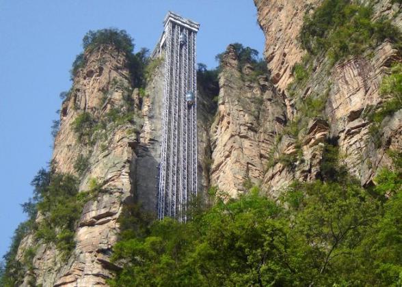 百龙天梯的建造历时三年,耗资1.8亿人民币,2002年4月竣工并投入运营,因是“世界上最高、运行速度最快、载重量最大的观景电梯”而被载入吉尼斯世界纪录。