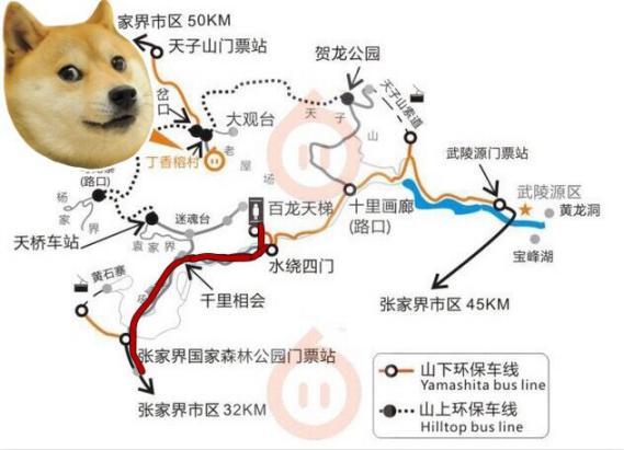 B线:在天门山索道公司坐景区环保车到山脚,再由山脚乘扶梯上山,下山时乘缆车回到索道公司;