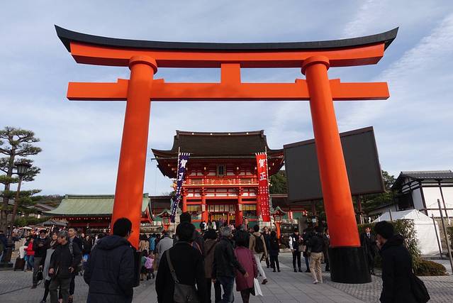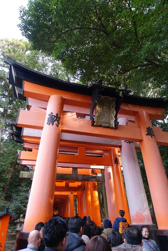稻荷神社主要是祈祷丰收,生意兴隆,交通安全,入口的这个大的鸟居事丰臣秀吉捐赠的。