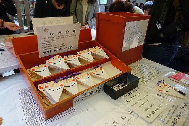 伏见稻荷大社特色的白狐绘马,写下自己的愿望,希望可以实现。