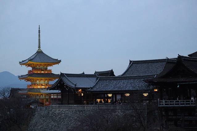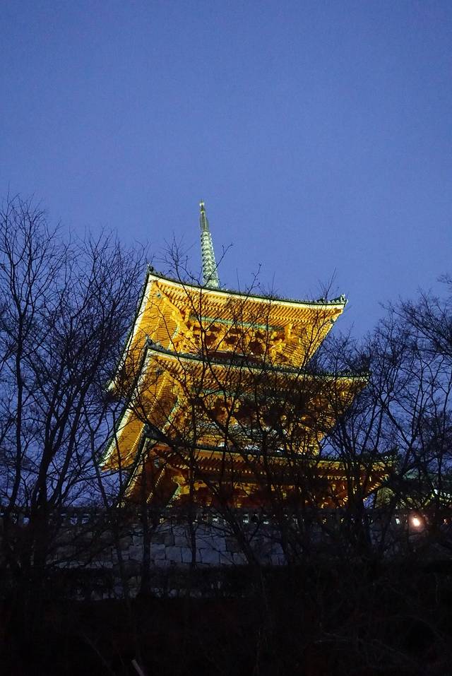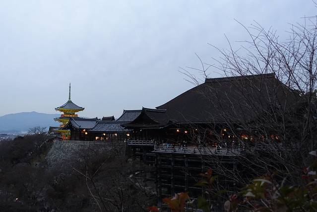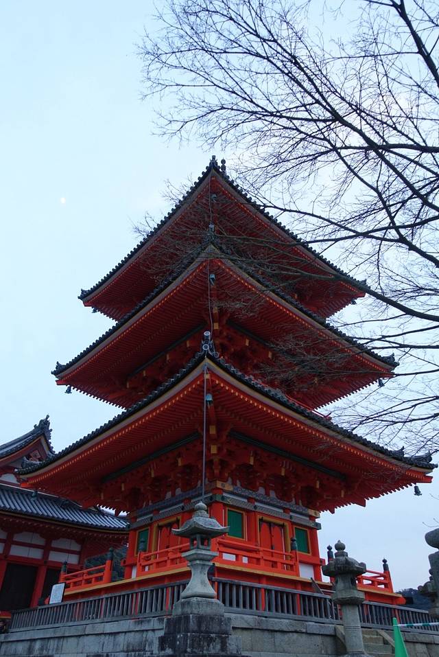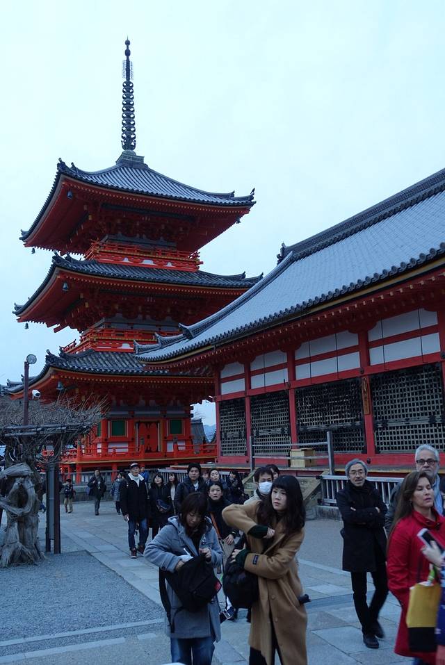 清水寺已经是第三次来了,不过还是第一次冬天来,红叶已经凋落,傍晚的清水寺依然很多游客,但是比起春夏秋,真的算是很惬意了。