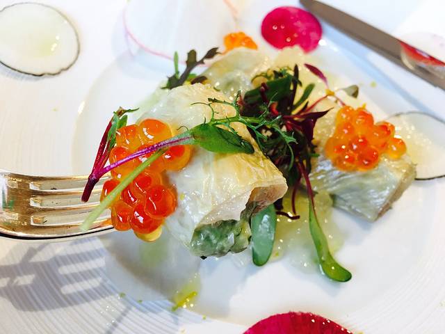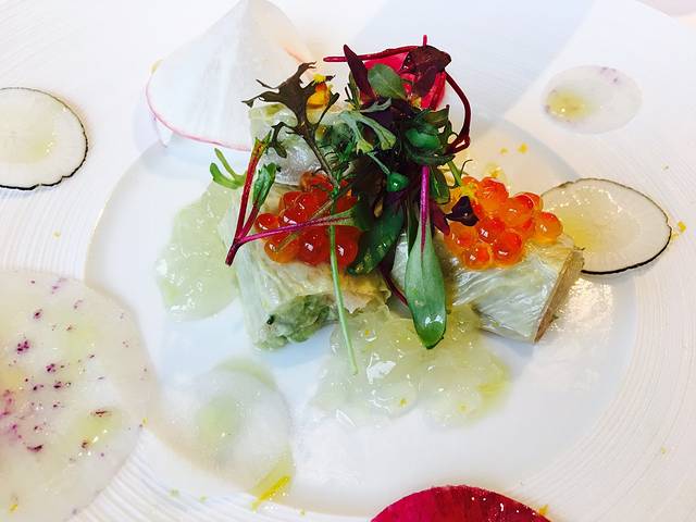 腐竹里面是生鱼片和牛油果,有种新寿司的感觉,但是特别好吃,鱼籽略带咸味,腐竹有嚼劲,生鱼片和牛油果混合味道口感不知道用什么词形容。