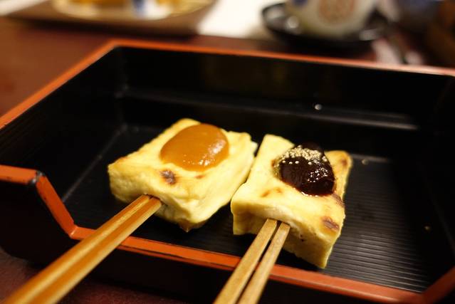 在京都吃吃豆制品,豆乳锅,每次上面的一层豆皮,沾一些淡的昆布酱油就已经狠鲜美了。还有软糯得像乳酪口感的豆腐,冬天的清水寺,关门都比较早,所以没有多想,就进了这家店,味道很不错,价格也适中。