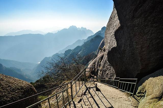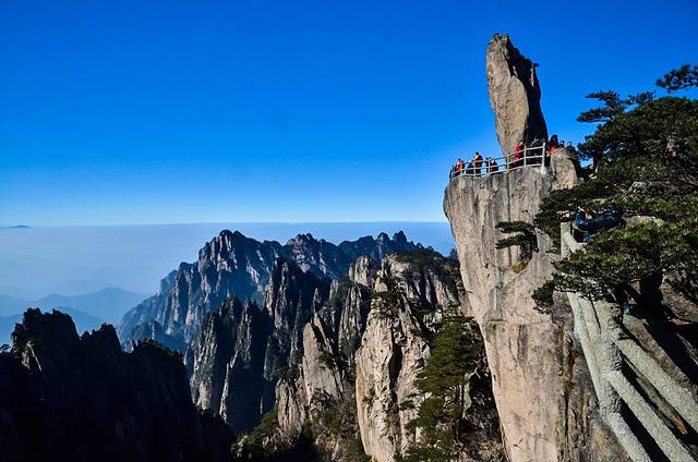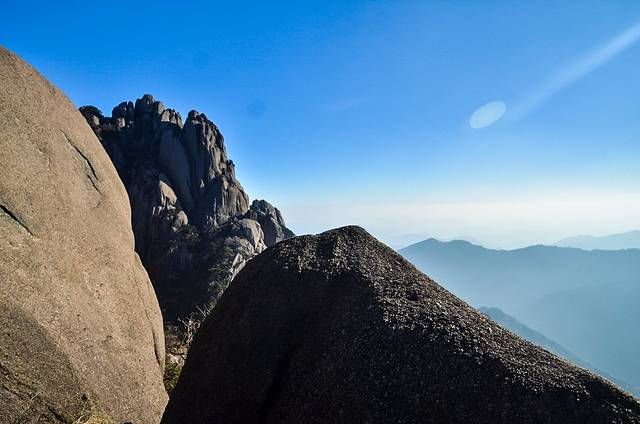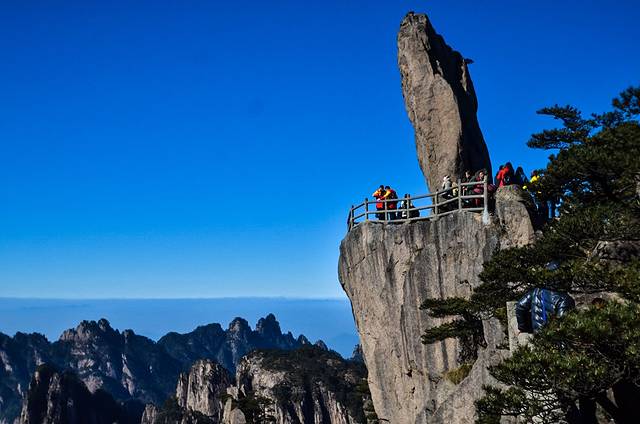 登上险峻的飞来石之顶,或许会有一些惊险的感受。然而,到达这里会有一番不一样的黄山视觉效果。大概这才是真正的黄山之美吧?
