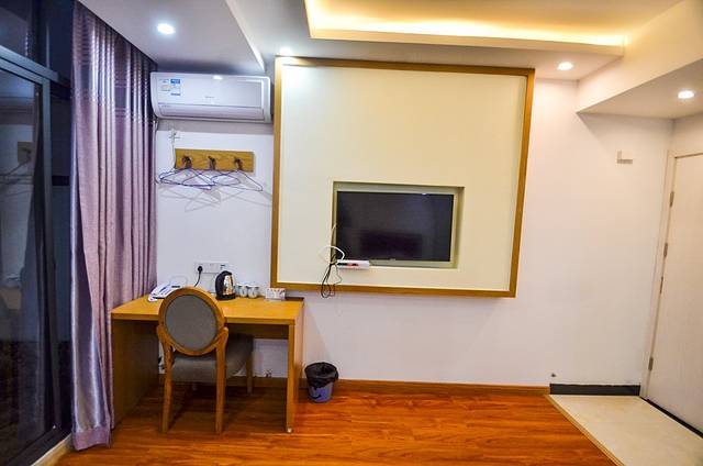 在硬件方面,拥有酒店的床上用品与材料,也有一般中档连锁酒店的洗漱用品,更有方便舒服的办公桌。对了,还值得一提的是空调的制热效果超级的好,虽然房间有近30个平方,但是空调打开之后20分钟左右整个房间暖烘烘的,非常的舒服。