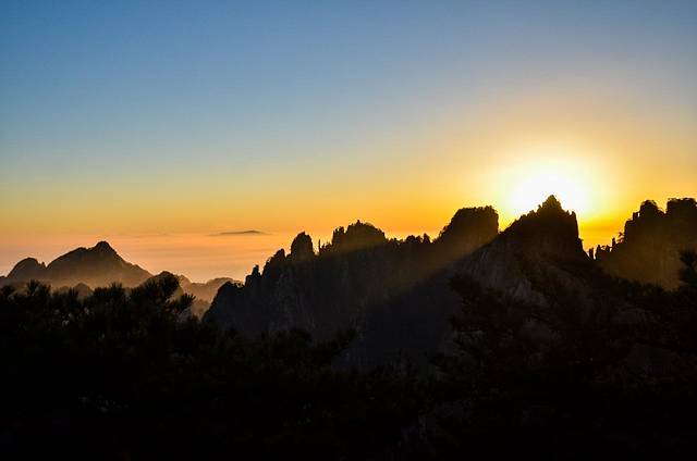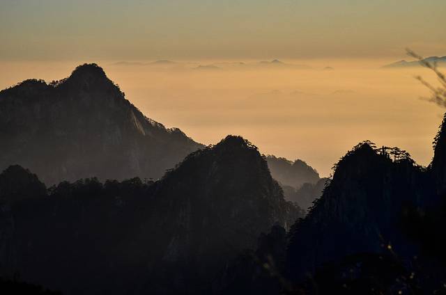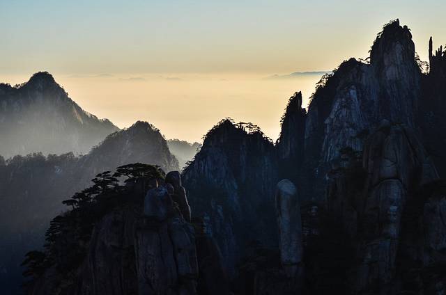 在黄山山顶之上,无论是夕阳西下还是日出东方。这里一切都在变化,唯一不变的就是唯美的宛如风景画一样的山峰。