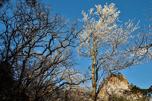 下过雪后的黄山北海景区的树上都是雾凇,看起来是不是有一种身在东北的韵味呢?