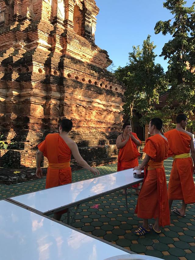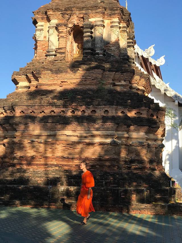 庙内传出阵阵梵音,非常的特别又酷炫,不过这也就只有清迈古城才有办法办到吧!:)