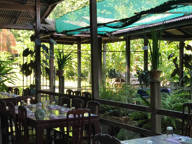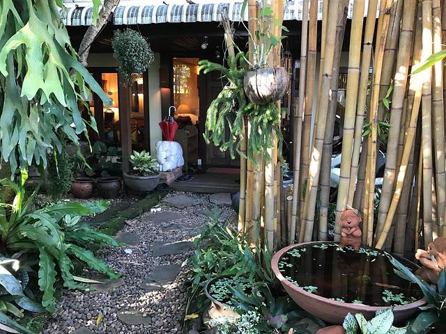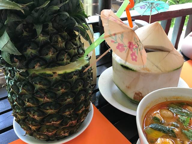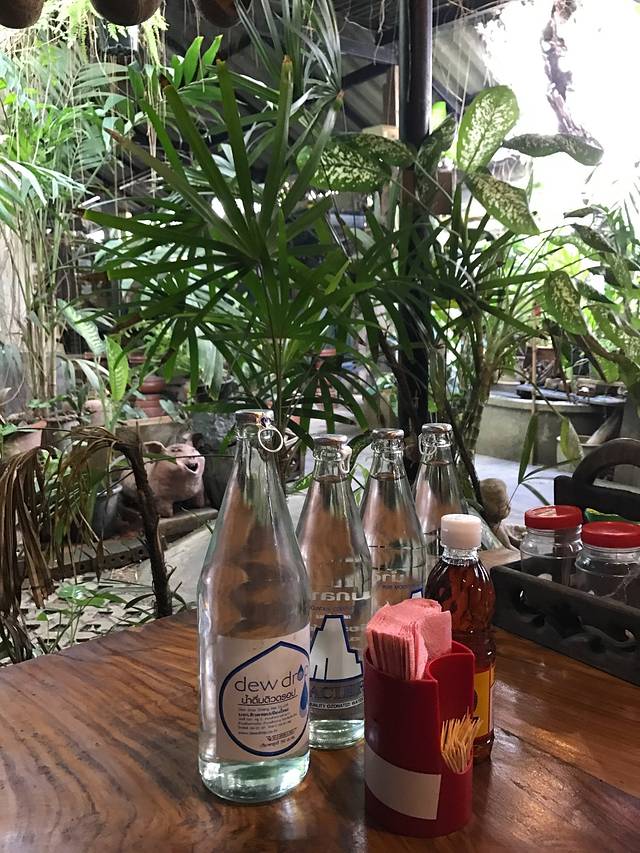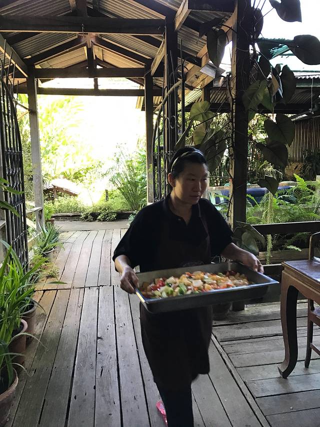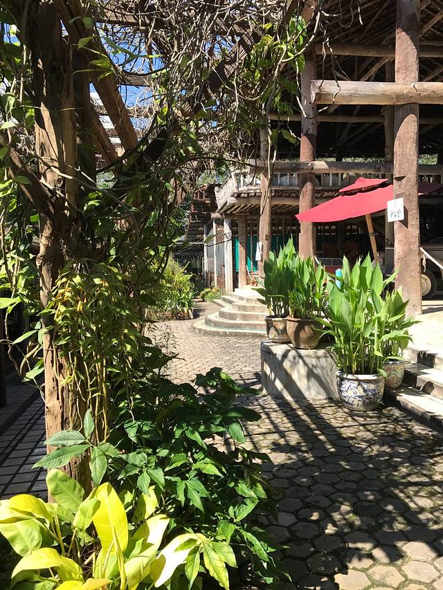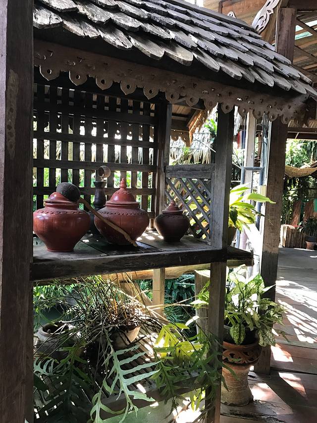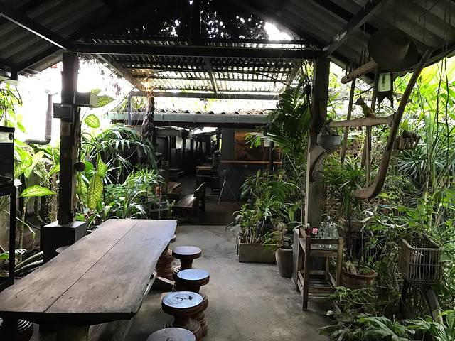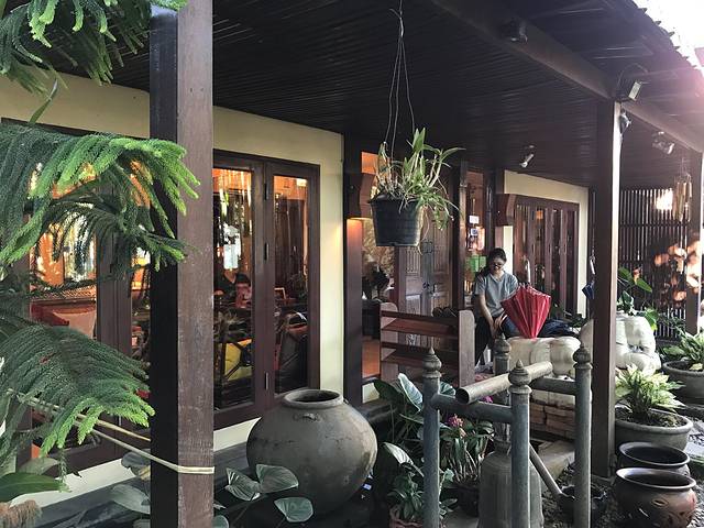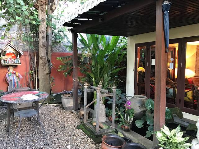 15号下午的飞机,上午我们往西北门的方向探索,意外发现了古城里一个曲径通幽的漂亮小饭馆,很多当地人光顾~~泰北酸肉蛋丶烤猪皮丶糯米饭丶泰式烧猪颈肉全部加起来100猪,真是要便宜哭了!