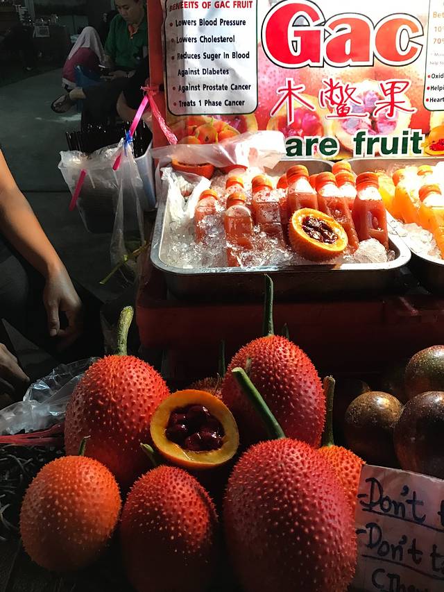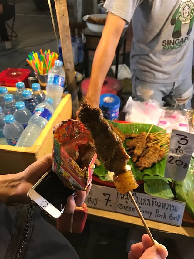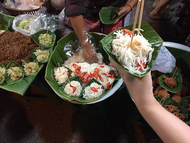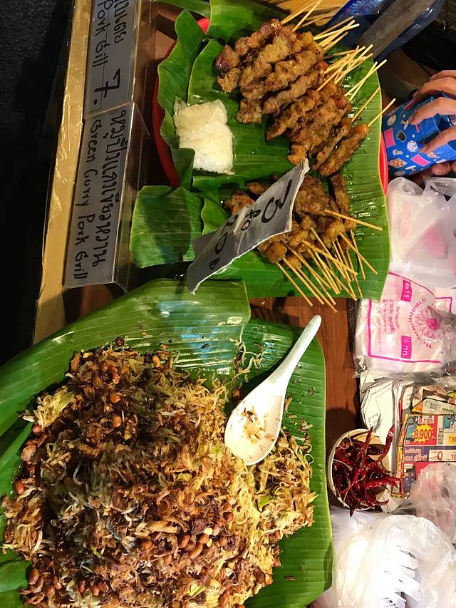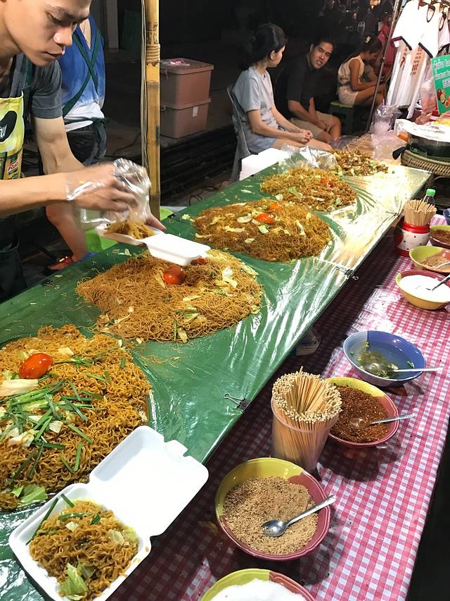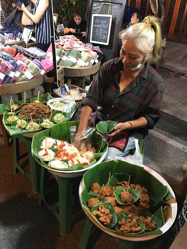 下午回到房间休息,快到6点出发周日夜市,要比前一天的周六夜市人多好多啊!街边巷尾灯火辉煌,布满花花绿绿的摊位,熟透的热带水果香甜多汁,各色烤串热气腾腾,还有那些鲜艳得只适合在东南亚招摇的民族风服饰,色彩斑斓的手工皂丶工艺品,造型奇异让人不识真面目的泰味小吃,自我陶醉扮相夸张的街头艺人,夜市的迷人之处就在它的鱼龙混杂,大家摩肩接踵,各取所需,满足兴奋的味蕾,放任自己的感官被度假小城满溢的兴奋和热情攻击轰炸。