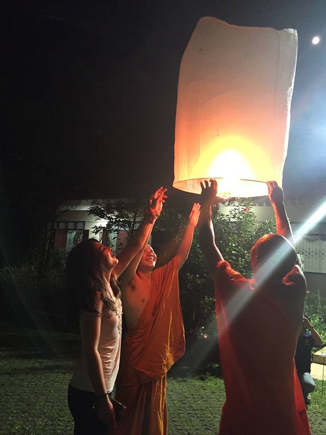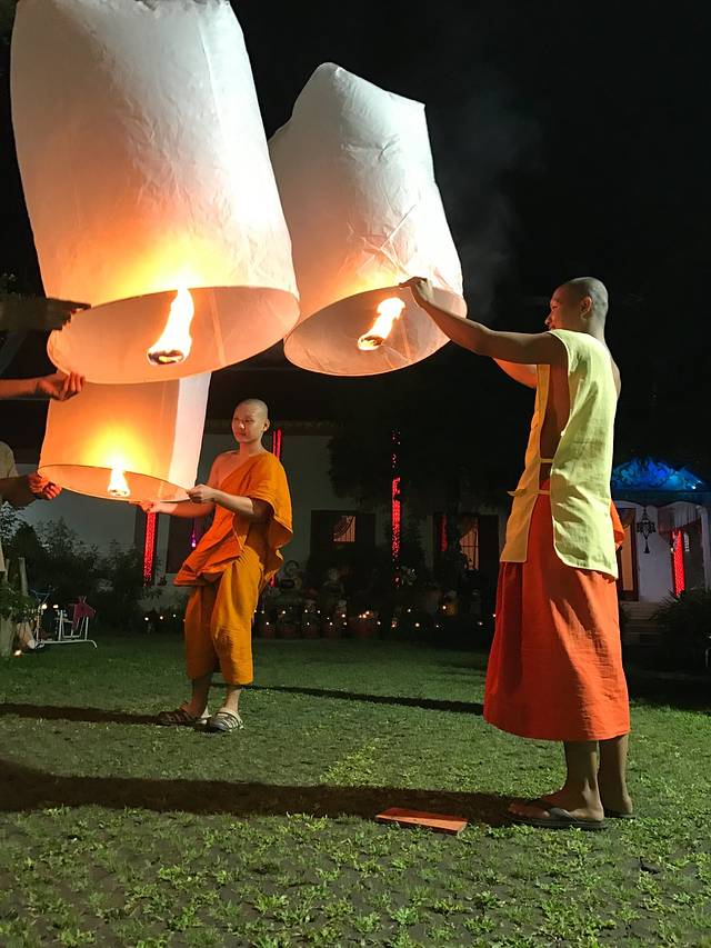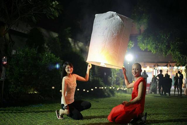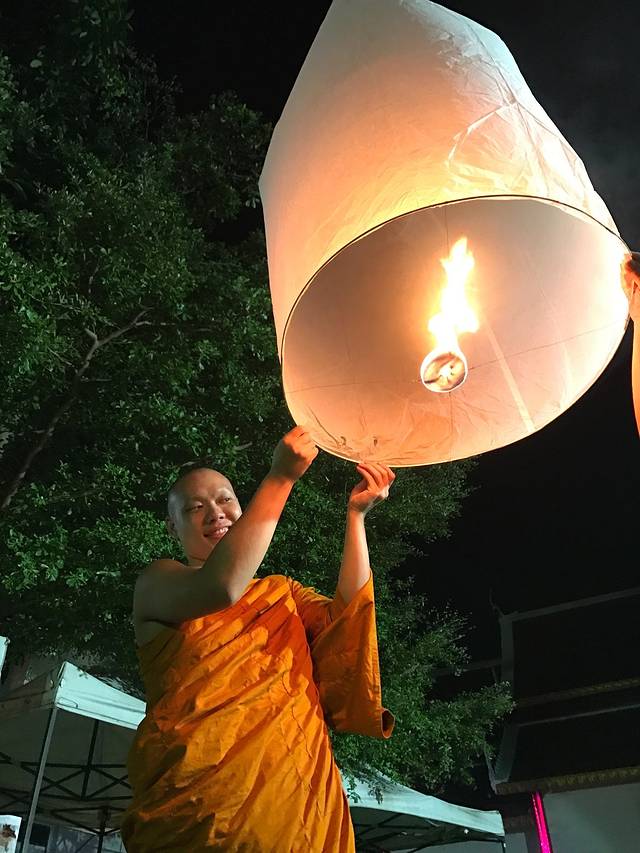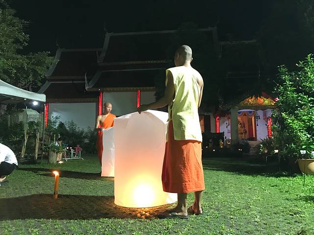 3年前错过了水灯节,给了自己一个重返小城的理由,因为它是清迈控必须参加的一个节日~水灯节是最喜爱的泰国节庆(没有之一),发现寺内有各式彩灯之外,还有民众祈愿的烛光丶小僧们手持天灯,随着佛祖面前水光到映,幻化成一幅最华丽的水灯节美景,也弥补了我对於无法参加万灯施放的遗憾。万人天灯现场,地点其实在离清迈20多公里外的申塞县梅州大学附近,票早都已经售空了~