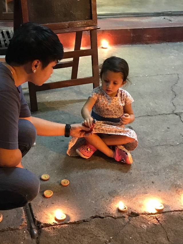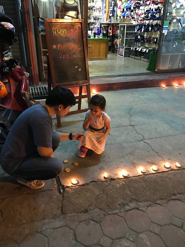 回笼觉睡到下午,先去逛逛街找吃的再按个小摩等天黑了去放天灯水灯