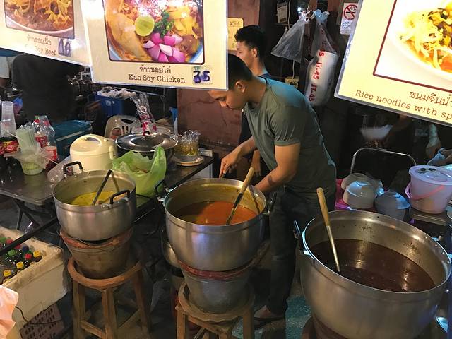 清迈门市场这家猪脚饭据说秒杀凤飞飞,还是很好找的。猪脚饭果然棒呆,汤汁浓郁,肉质酥软,解决一大碗饭。
