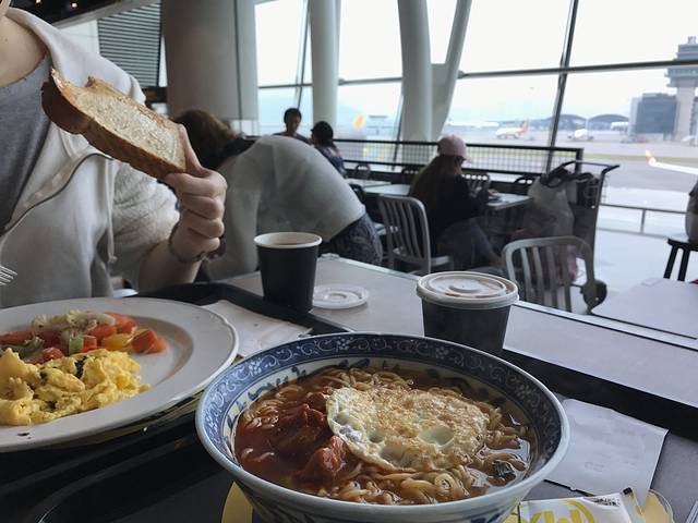 check in后在登机口附近吃早餐 ,元气满满