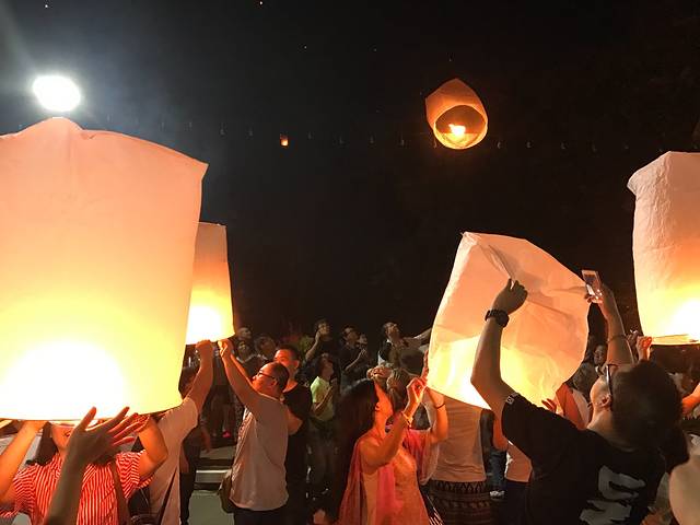 没有去万灯施放没关系,我已经很满足了。根据去年取消免费场的经验来说,除了官方举办的Maejo大学的收费场之外,在Ping河以及古城的护城河边,限定时间段是可以集体燃放天灯的~ 也很壮观哦!