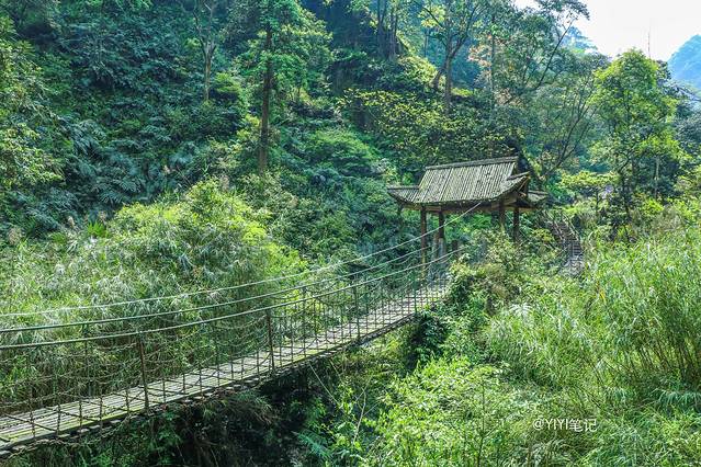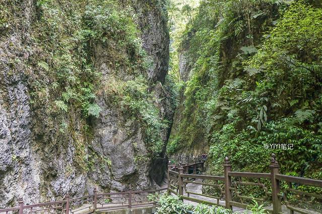 踏着石阶过河,走在如峡谷一般的风景里。从清音阁至一线天,沿着黑龙江西行上山,山径在江两岸迂回曲折。