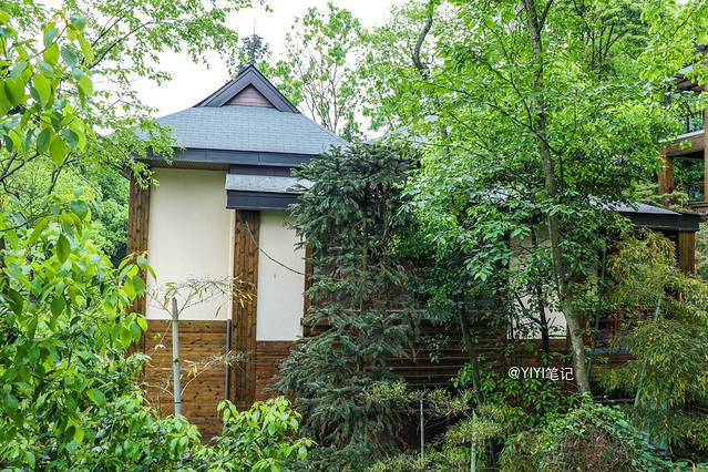 短短几分钟就到万年寺上行索道,在索道口就有一家酒店,万年雪芽坊度假别墅。这一处山间小筑依山而建,掩映于青山绿水之间,带着一种文艺的气息,恰好和峨眉半山的气质相符。雪芽坊有四幢独立别墅,每个房间都是一道风景。