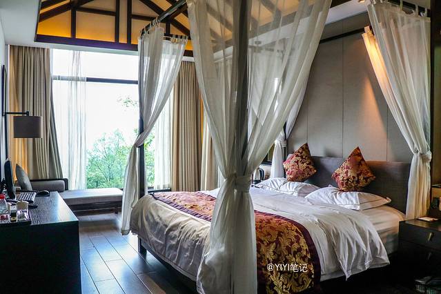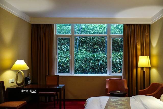 房间里大大的玻璃窗,窗外就是绿植,住在这样的环境里,我对峨眉山的爱又更上一层。