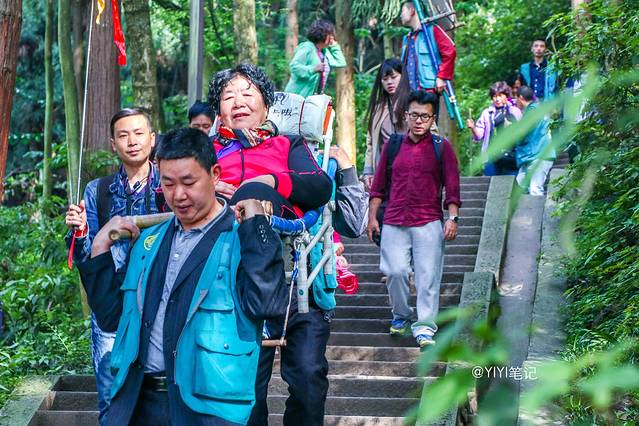 下山的路上有很多的滑竿,如果体力不支的话就可以坐滑竿下山。坐滑竿还是挺吓人的,下山的时候就像要掉下去一样。其实我也没坐过滑竿,毕竟我的体力还不需要,反正遇到很多阿姨被一群滑竿大叔追着走。