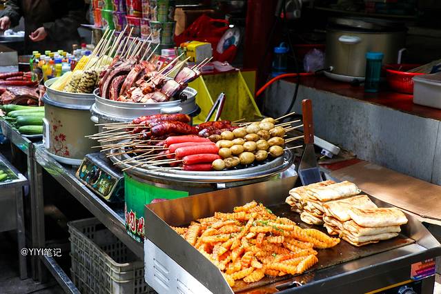 路边小摊上卖的香肠、腊排骨、煮玉米、茶叶蛋都很不错,非常香,而且也不贵,还有狼牙土豆,也是峨眉的特色小吃。